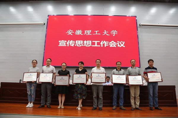 6月5日下午,学校在舜耕会堂召开2018年全校宣传思想工作会议,总结学校2017年宣传思想工作,部署学校2018年宣传思想工作,表彰2017年度新闻宣传工作先进集体和个人。校领导郭永存、袁亮、周峰、郑明东、吴照明、宫能平、董雨等出席会议并为受到表彰的集体和个人颁奖。校党委常委、副校长董雨主持会议。