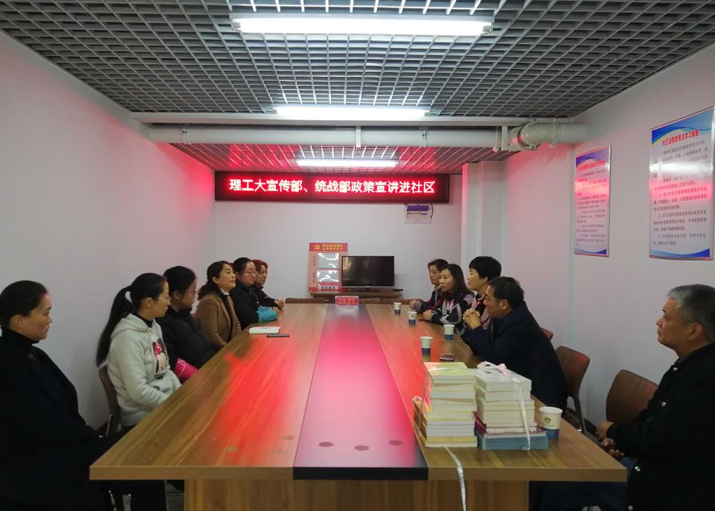 11月28日上午,党委宣传部、统战部党支部一行来到安理大社区开展政策宣讲活动。