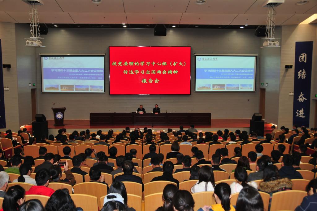 学校举行党委理论学习中心组(扩大)传达学习全国“两会”精神报告会