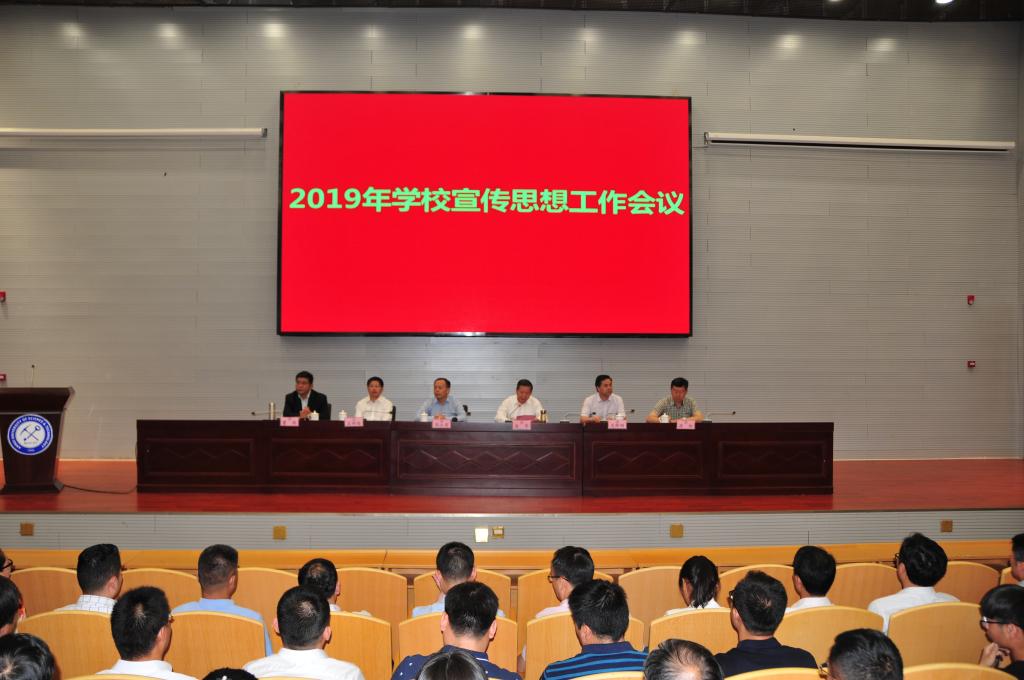 校党委书记郭永存从理论武装、意识形态工作责任制、新闻宣传、思想政治教育工作、精神文明建设和校园文化建设等方面对2018年学校宣传思想工作进行了总结和回顾;重点从七个方面部署和安排了学校2019年宣传思想工作:深入学习贯彻习近平新时代中国特色社会主义思想;牢牢掌握意识形态工作领导权;紧紧围绕庆祝新中国成立70周年开展主题宣传教育实践活动;深入贯彻落实全国高校思政工作会议和习近平总书记在学校思政课教师座谈会上重要讲话精神,切实提高思政工作质量;切实加强理想信念和核心价值观教育;着力提升新闻舆论传播力引导力影响力公信力;积极推进校园文化和精神文明建设。