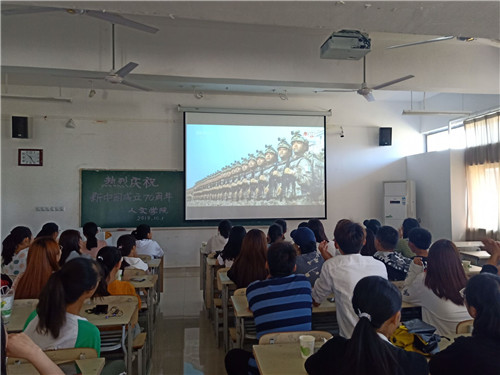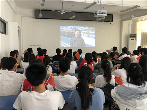 10月1日上午10时,庆祝中华人民共和国成立70周年大会、阅兵式和群众游行在北京天安门广场隆重举行。中共中央总书记、国家主席、中央军委主席习近平发表重要讲话并检阅部队。学校组织师生代表在舜耕会堂集中收看了庆祝大会盛况,聆听学习了习近平总书记发表的重要讲话,共同回顾新中国成立70周年来走过的伟大历程,为祖国的繁荣昌盛而骄傲欢呼。