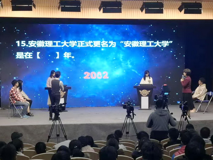 12月6日下午,淮南电视台《文化擂台》安徽理工大学专场节目在学校钻石剧场顺利录制完成,将于近期在淮南电视台播出。