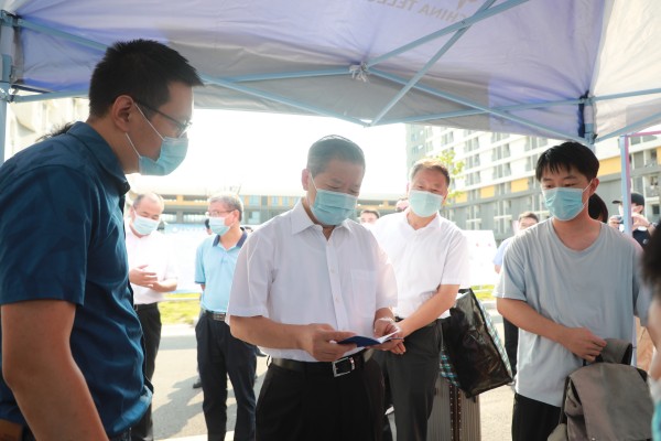 因疫情防控需要,新生家长无法进入校园。袁亮一行来到学校南门,感谢学生家长对安徽理工大学的信任和对学校迎新工作、疫情防控措施给予的理解与支持,认真听取新生家长对学校工作的建议。“请家长们放心,你们把孩子交给我们,我们一定把孩子教育培养好”,袁亮详细解答了学生课程学习、生活住宿等家长们关心的问题。校领导在南门现场查看了学生核酸检测报告查验、安康码查验、体温检测、行李物品消杀等环节防控措施落实情况,并叮嘱相关部门要扎实做好疫情防控工作,确保新生报到入学各项工作平稳有序。