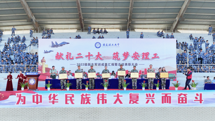 九月安理,秋和景明。9月30日上午,学校在至诚体育场举行2022级学生军训成果汇报暨总结表彰大会。8300多名参训学员身着戎装,英姿飒爽,展示14天的军训成果,为开学第一课交上了一份自信而满意的答卷。