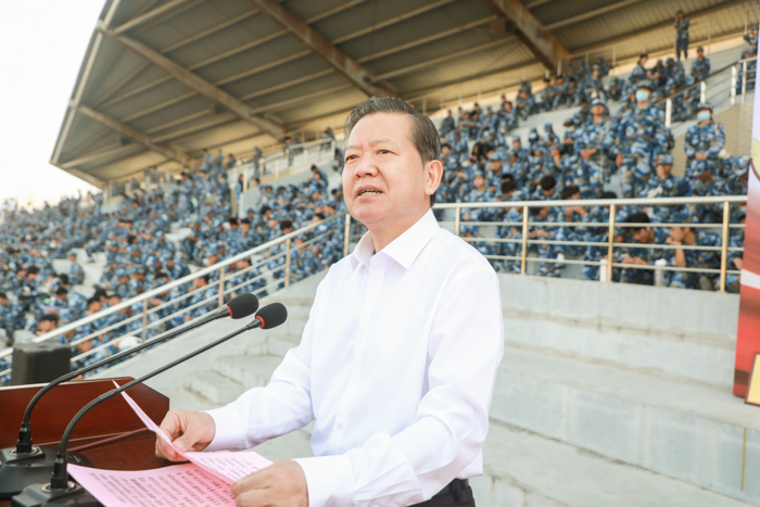 校军训工作领导组各成员单位负责人、承训部队全体教官、全体教导员、全体新生学员等参加大会。
