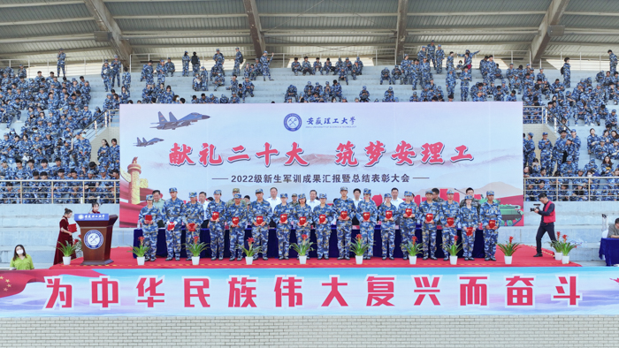 2022级学生军训汇报表演暨总结表彰大会在嘹亮激昂的《中国人民解放军军歌》声中圆满结束。