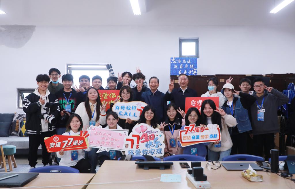 随后,袁亮一行又来到学校校报记者团和新媒体中心,对同学们分工协作、集思广益、同心同力,策划了一系列校庆活动,高质量做好新闻稿撰写、MV制作,统筹好77周年校庆的内外宣传工作,全力营造好77年校庆氛围,成果显著、卓有成效的辛苦工作表示感谢,充分肯定了同学们坚持以大学生的视角,关注透视校园焦点,讲述校园生活故事,记录安理大的发展变化,学校公众号、头条、官微、新闻网、校报等已经成为倾听同学心声、繁荣校园文化、引导校园舆论,促进大学生综合素质全面发展的重要窗口,希望记者团和融媒体中心抓好学生记者队伍建设、总结经验、增强对外报道力度,让主流声音牢牢占领舆论场,激发满满正能量,助力学校双一流大学创建。