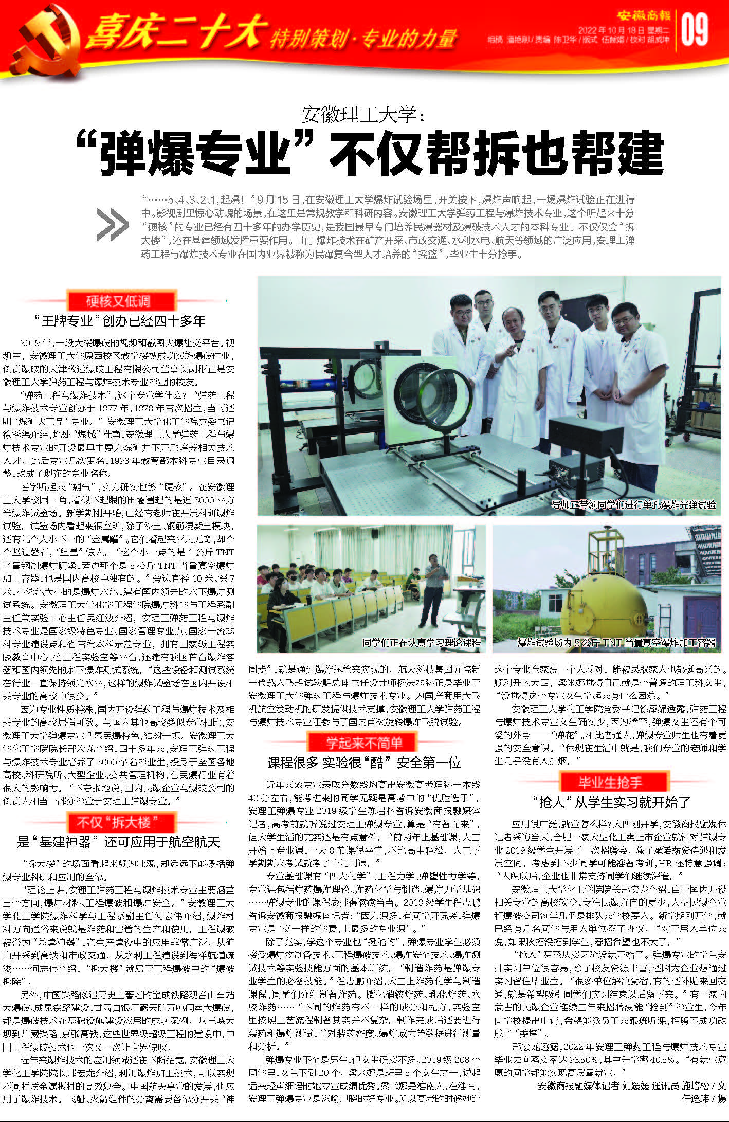 《安徽商报》喜庆二十大专刊报道我校弹药工程与爆炸技术专业建设