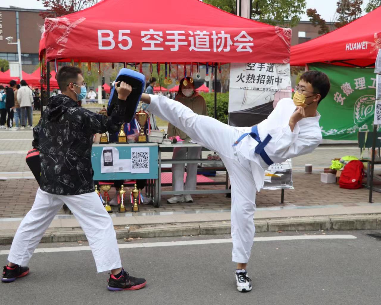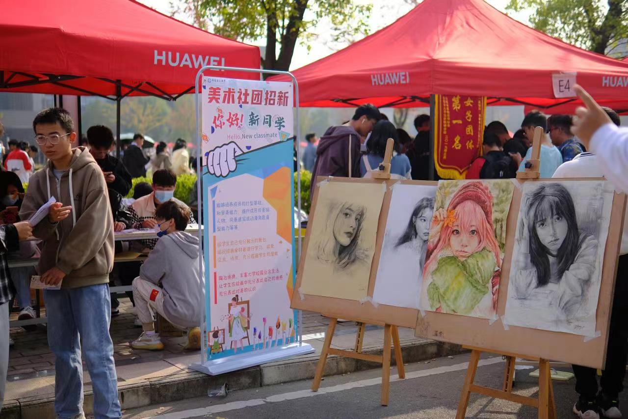 在各招新展位上,缤纷多彩的社团展现出奋发昂扬的青春风貌。爱心社、青年志愿者协会展位前志愿服务的累累硕果吸引着一大批同学们关注公益;航模与科技践行协会、智造协会极大激发了新同学们参与创新的积极性;弘扬中华传统文化与美学的素瑾汉服社与古韵国学协会也有国学爱好者集结。还有读书俱乐部、军事爱好者协会、武术协会、燃点滑板社等各类社团绽放风采。各学生社团通过展板宣传、互动体验、舞台展演等形式,立体化展示社团的建设成果,向全校师生展示出学生社团积极健康的靓丽风采。