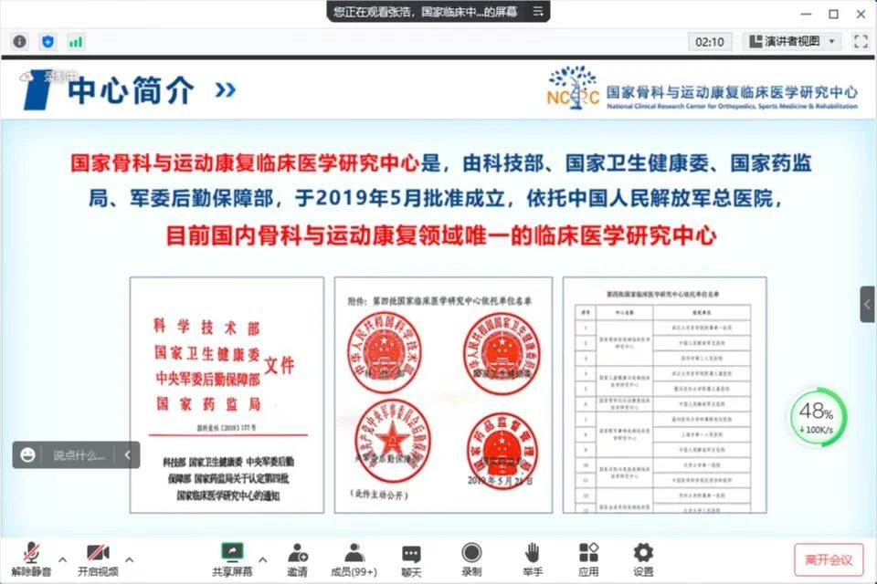 会上,国家临床中心主任唐佩福、国家临床中心执行主任王松俊致开幕辞,国家临床中心办公室主任张浩进行科普建设工程项目介绍,各成员单位代表发言。国家骨科与运动康复临床医学研究中心成员单位负责人、一附院骨科技术主任董斌,国家骨科与运动康复临床医学研究中心“科普建设工程”工作委员会委员、一附院骨科副主任陶钧参加会议。