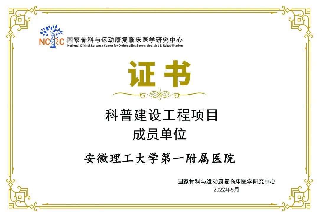 2022年9月4日中共中央办公厅、国务院办公厅《关于新时代进一步加强科学技术普及工作的意见》中明确指出,科学普及工作是实现社会创新发展的基础性工作,同时,科普能力将会成为医院品牌运营和医生职业发展新的必备素质。一附院骨科为“十三五”省级重点特色专科。骨科技术主任董斌现担任中华医学会安徽省骨科学分会常委、中国医师协会安徽省骨科学分会常委、淮南市骨科学会主任委员,其他骨科医师担任任省级各专业学组委员9人。骨科副主任、主任医师陶钧受聘为国家骨科与运动康复临床医学研究中心“科普建设工程”工作委员会委员。