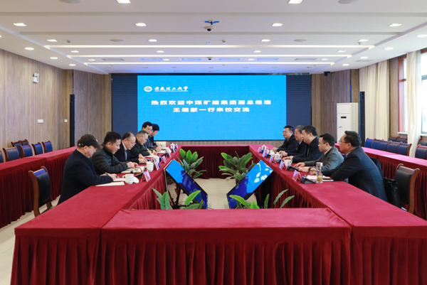 郭永存代表学校对王继献一行表示热烈欢迎,对中煤矿建集团长期以来给予学校的支持和信任表示感谢,并从人才培养、学科发展、科学研究、平台建设、深入实施“四个融入”发展战略等方面,介绍了学校围绕“双一流”创建目标取得的突出成果。