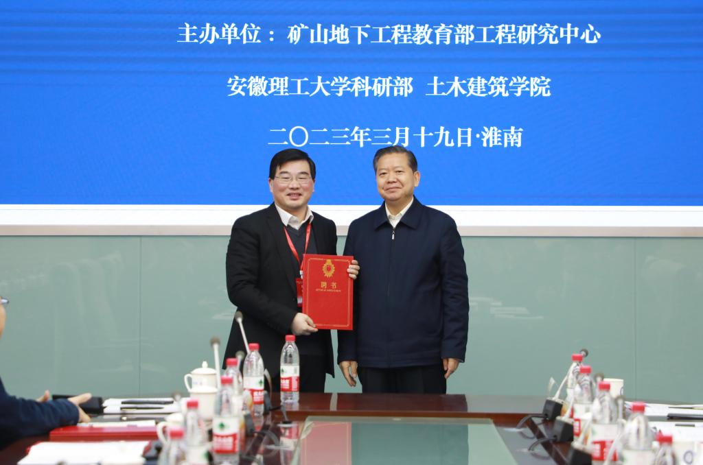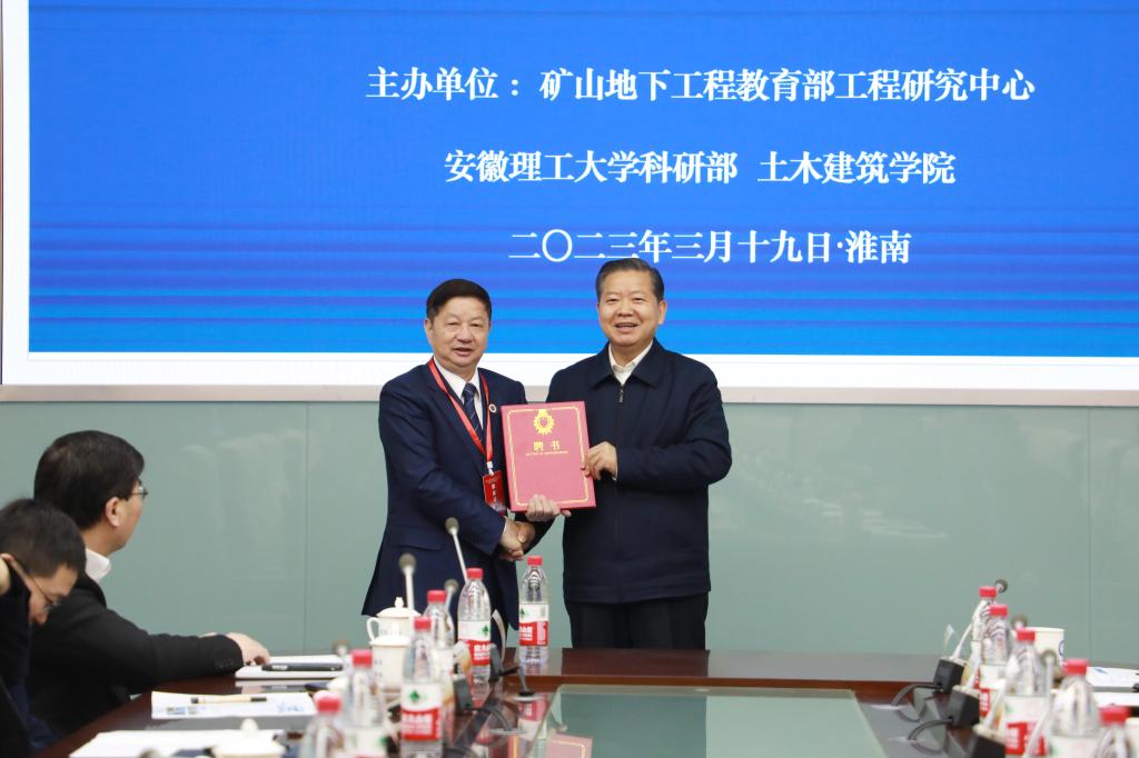 其间,袁亮为矿山地下工程教育部工程研究中心技术委员会成员颁发聘书。陈湘生院士担任技术委员会主任,蔡美峰院士、李术才院士、杜修力院士、朱合华院士、王明洋院士担任副主任,吴刚、刘汉龙、何川、刘泉声、左建平、马占国、王静峰任委员。