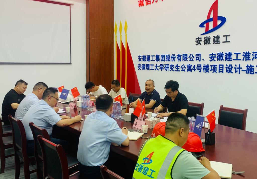 王先江首先深入不同楼层施工面,实地查看了项目建设进展情况。随后,会议听取了校园基本建设处、安徽建工集团股份有限公司、安徽华东工程建设项目管理有限公司等参建方对项目进度安排、质量控制、安全文明施工、下一步工作计划等方面情况的汇报。