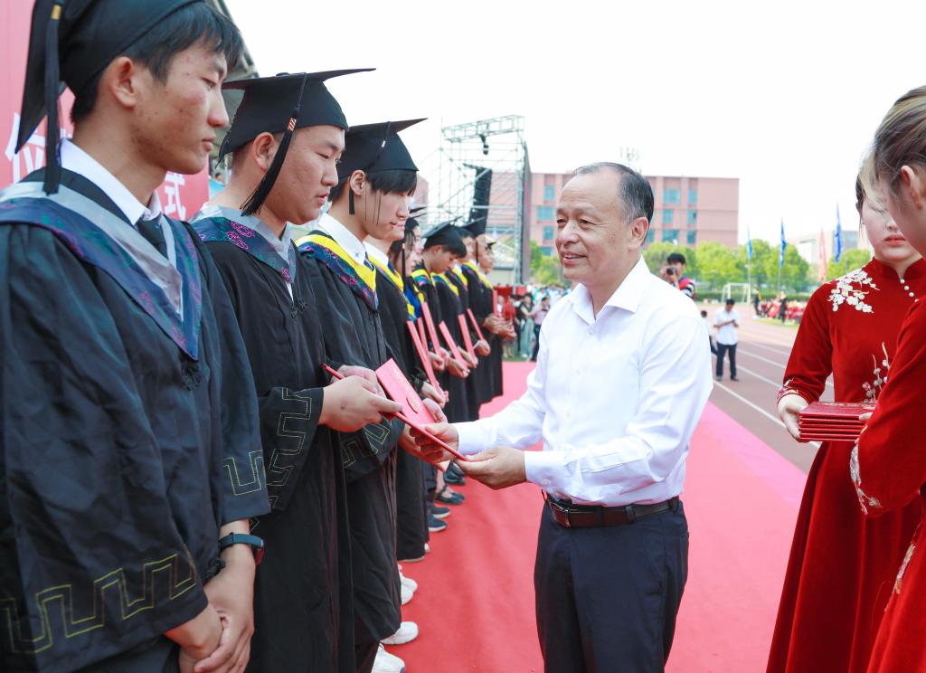 郭永存、袁亮等校领导为毕业生扶苏拨穗