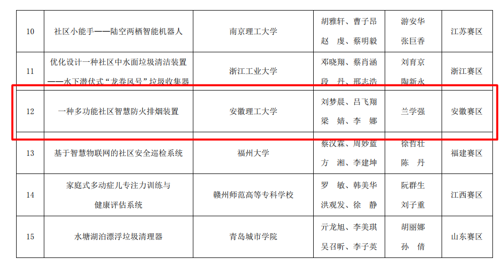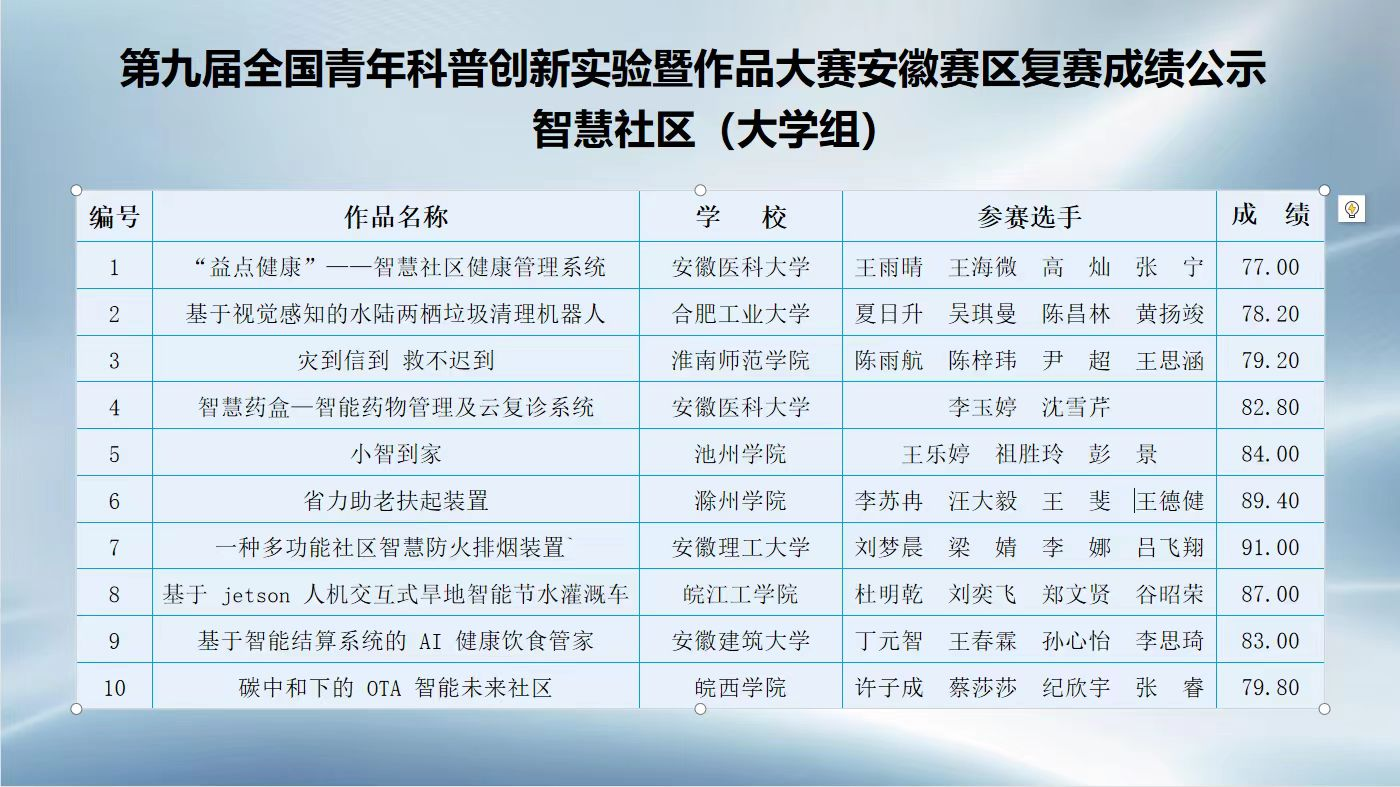 安徽赛区复赛成绩公示截图(智慧社区大学组)