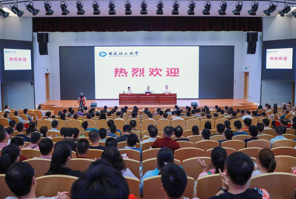 郭永存致辞并介绍学校发展情况。他对淮南市教体局、淮南市9所高中的领导老师来校交流表示热烈欢迎和衷心感谢!郭永存从校史沿革、党政重视、校园环境、学科专业、科技创新、师资队伍、人才培养、发展目标、战略举措、招生有你等十个方面介绍了学校的发展情况,重点解读了学校的办学优势和人才培养特色,全面、生动地展示了近年来学校高质量发展取得的一系列标志性成就,各项事业发生的深层次、格局性变化。他强调,优质生源是提高人才培养质量的重要基础,是加快推进“双一流”创建的根本保障,诚挚期盼更多的淮南学子圆梦安理。会上,郭永存还介绍了学校招生录取情况及转专业、奖助学金等政策,并就参会教师关心的问题同大家互动交流。活动现场气氛热烈,掌声不断。