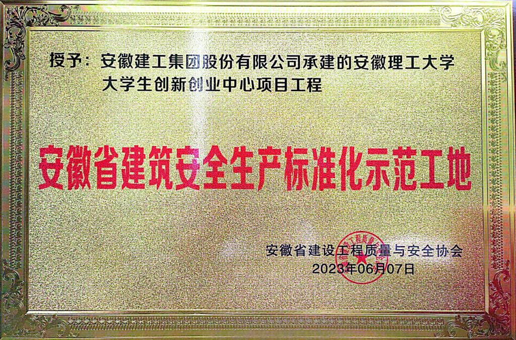 大学生创新创业中心项目获评“安徽省建筑安全生产标准化示范工地”