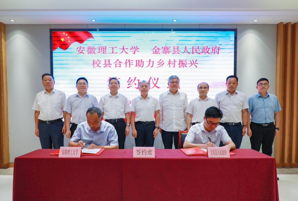 9月4日上午,学校与金寨县人民政府在安徽金寨干部学院隆重举行校县合作助力乡村振兴战略合作签约仪式。校党委书记郭永存,校党委副书记、校长袁亮院士,六安市委常委、金寨县委书记汪冬,县委副书记、县长张涧出席仪式。校党委副书记、常务副校长余玉刚,校党委常委、副校长宫能平、张平松,“大国工匠”朱恒银教授,金寨县委常委、金寨干部学院常务副院长查德金,县委常委、县委组织部部长倪秀锋,县委常委、县委办主任张贻胜,副县长陈奎松等参加签字仪式。张涧主持签约仪式。