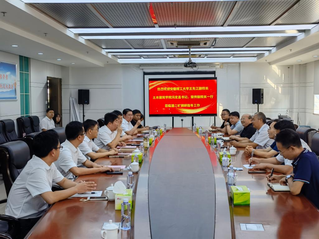 9月7日下午,校党委常委、副校长王先江带领土木建筑学院领导班子成员实地走访潘二煤矿,签订大学生就业创业实践基地合作协议,看望校友并与潘二煤矿领导班子成员进行座谈交流。