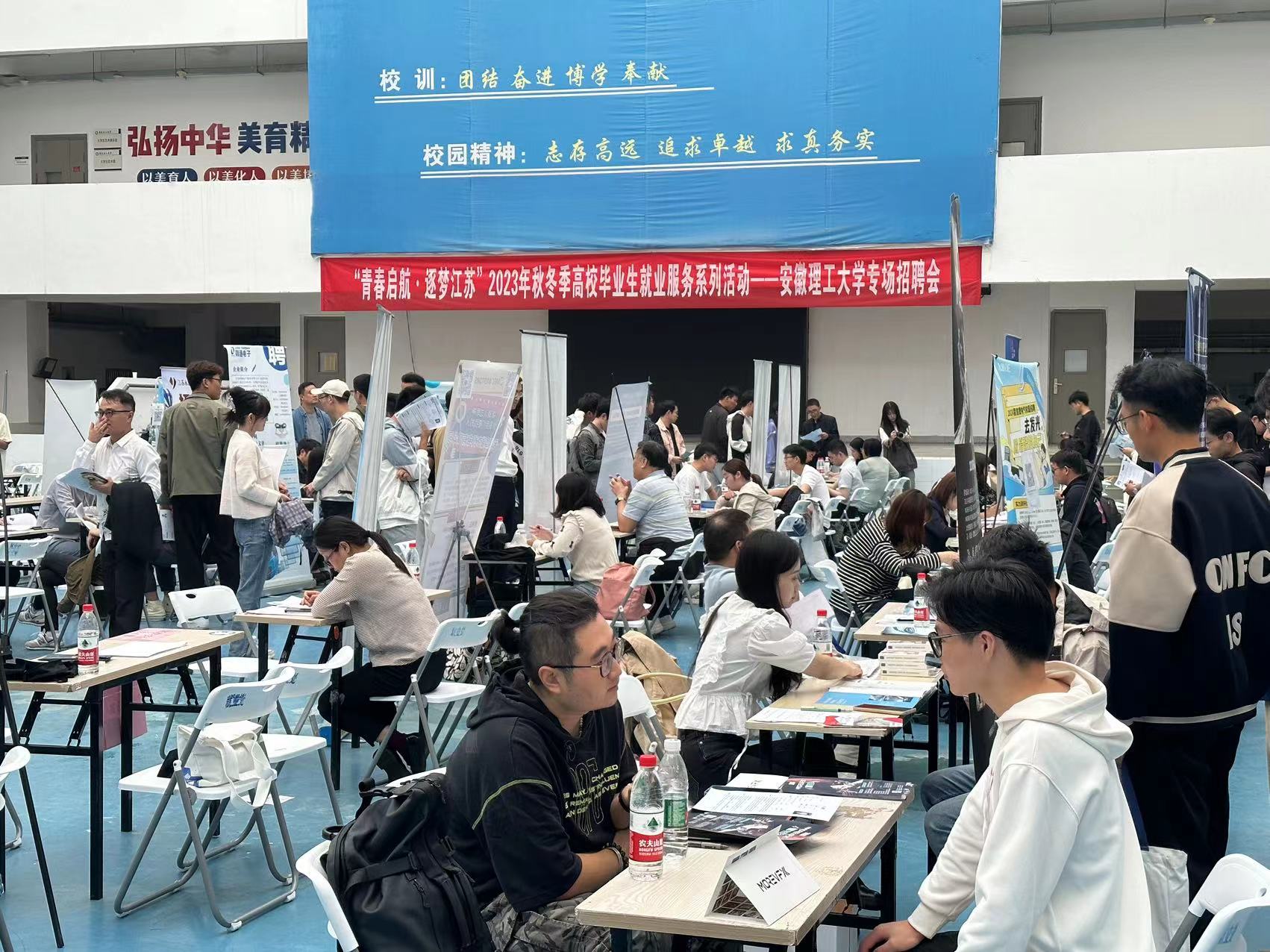 经学校与江苏省人社厅对接并邀请,9月24日下午 ,“青春启航·逐梦江苏”2023年秋冬季高校毕业生就业服务系列活动——安徽理工大学专场招聘会在厚德馆成功举办,来自无锡、连云港、盐城等地市的62家用人单位到会招聘。