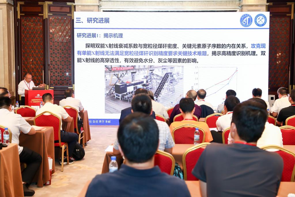 23日下午,在矿山智能技术与装备分论坛上,郭永存作了题为《煤矸X射线智能分选关键技术与装备》的报告,他向与会人员介绍了学校办学历史、办学特色以及办学成就等,以及课题组在煤矸石X射线分选研究进展、研发的装备技术优势以及应用案例等情况。
