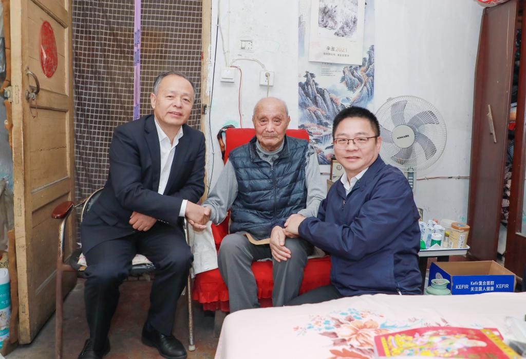 郭永存看望慰问百岁老人并向全校离退休老同志致以节日祝福
