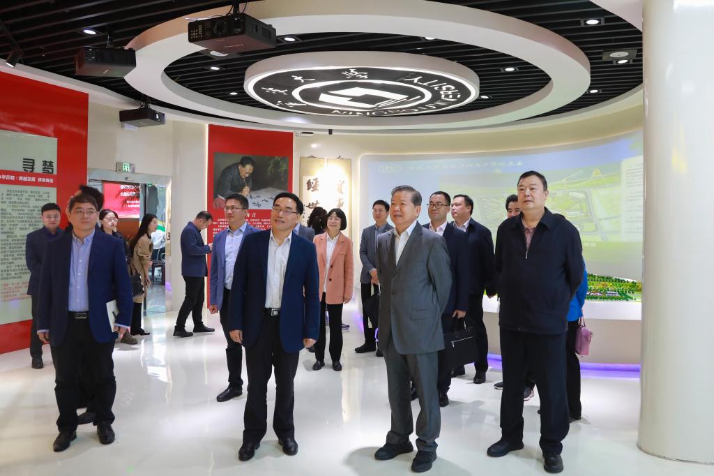 会前,袁亮一行在蔡荣根陪同下参观了宁波大学校史馆。蔡荣根通过校区规划沙盘及展厅图文介绍了宁波大学在党和国家大力关心下、在包玉刚等“宁波帮”人士鼎力支持下的发展历程、办学成就、学科建设等情况。