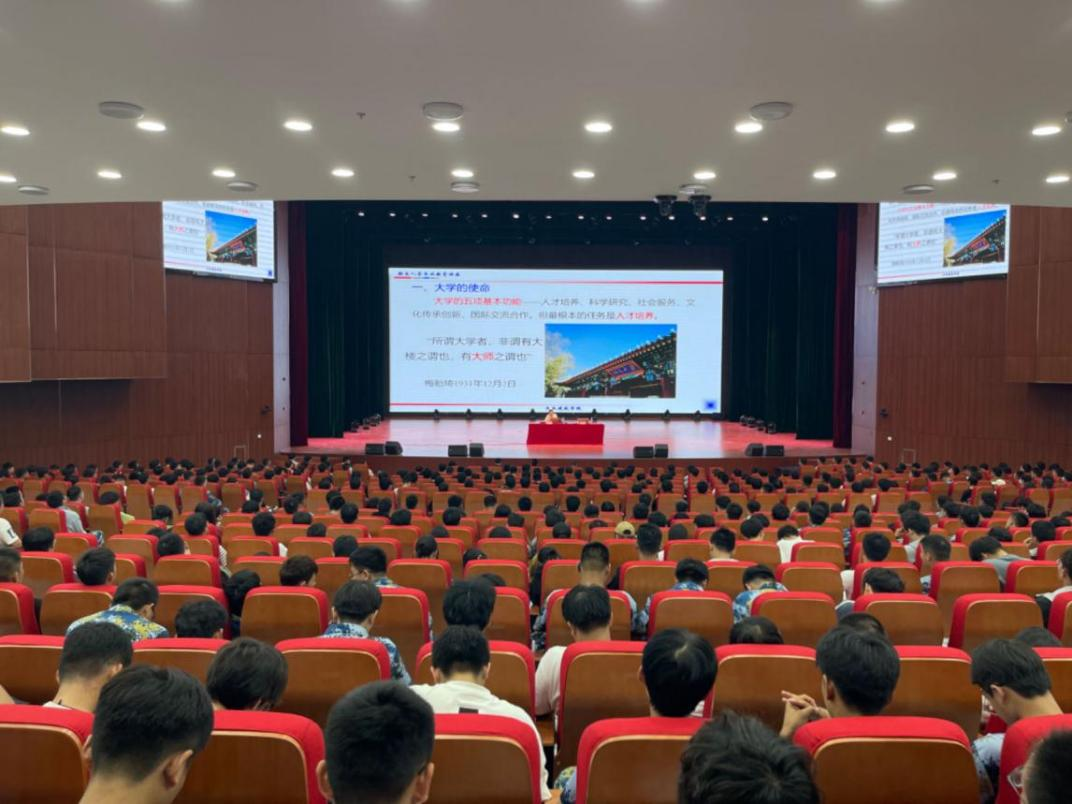 为助力新生尽快适应、融入大学生活,学校围绕“五育并举”构建新生入学教育科学化课程体系,精心设计为期两周的“启航教育”新生入学教育课程,课程涵盖了理想信念、学涯规划、文明修身、校规校纪、学籍管理、奖助知识、团学实践、心理健康、安全教育等核心素养教育内容。本次启航教育以舜耕会堂为主会场,各学院轮流组织新生现场聆听,以新生班级自习教室为分会场,通过现场直播的方式一同观看。校党委常委、副校长董雨作为学涯规划课程主讲人,以“生涯发展唤醒课:如何度过你的大学四年”为题,对同学们提出了殷切希望,要牢记使命任务,厚植家国情怀,懂得爱校荣校,以积极、理性、平和、向上的心态迎接大学四年的学习生涯。