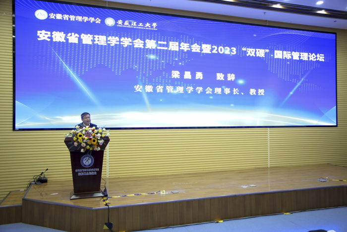 梁昌勇代表安徽省管理学会对参加论坛的各位专家学者表示诚挚欢迎。他表示,年会的举办是安徽省经济与管理学界的一件大事,学会始终秉承理论与实践相结合,创新与应用相结合的办会思想,不断提炼前沿学理方法,不断总结先进管理思想,坚持需求导向,坚持服务安徽省地方经济社会发展。本次年会主题紧扣时代发展脉搏,希望与会学者充分交流,更好地将先进的管理理念方法与经济社会发展需求深度融合,充分展现管理学领域的安徽智慧。
