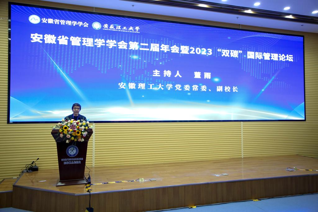 11月17日至18日,安徽省管理学学会第二届年会暨2023“双碳”国际管理论坛在我校深部煤矿采动响应与灾害防控国家重点实验室2号报告厅成功举办。本次会议以“双碳战略之安徽管理实践”为主题,由安徽省管理学学会主办、安徽理工大学经济与管理学院承办。安徽省社科联党组成员、副主席江涛,淮南师范学院党委副书记、院长程刚,校党委副书记、常务副校长余玉刚,安徽省管理学会副理事长、校党委常委、副校长董雨,安徽省管理学会理事长梁昌勇等相关部门领导、专家学者出席了开幕式。大会开幕式由董雨主持。