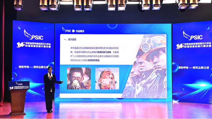 本届大赛共有来自全省72所高校2000余件作品报名参赛,经校级预赛、省级复赛、网络投票等环节,共20项作品(我校4项)入围大赛决赛环节。经过现场路演激烈角逐,最终我校医学院作品《清新呼吸—探究尘肺之谜》、电气与信息工程学院作品《一座追寻了百年的炉灶—可控核聚变》、安全科学与工程学院《烟雾中的救星:揭开高压细水雾防烟的神秘面纱》、人文社会科学学院《蟾宫挖宝:月面采样封装神器的诞生》4件作品获得安徽省一等奖。