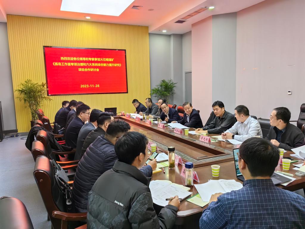 袁亮院士对张超一行来校开展合作交流表示欢迎。会上,袁亮院士仔细查阅了火石咀煤矿采掘平面图,听取了火石咀煤矿总工程师周刚关于矿井概况的汇报、我校薛生教授关于专家会诊报告的汇报以及华北科技学院刘金海教授关于孤岛工作面专项治理方案的汇报。袁亮院士指出,矿井安全生产系统的全面提升是保障火石咀煤矿安全生产的基础,同时还需要关注巷道围岩控制和冲击地压监测预警等,重点推进孤岛工作面和大巷煤柱回收工作面冲击地压专项治理、高应力巷道支护技术攻关、水文地质勘探和八采区采掘工作面的科学布置等工作,消除矿井生产过程中所面临的灾害风险。同时强调,针对目前火石咀煤矿所面临的难题,需要尽快凝练项目研究课题和内容,组建行业研究团队,深入现场,落实各项研究工作,解决煤矿实际困难。
