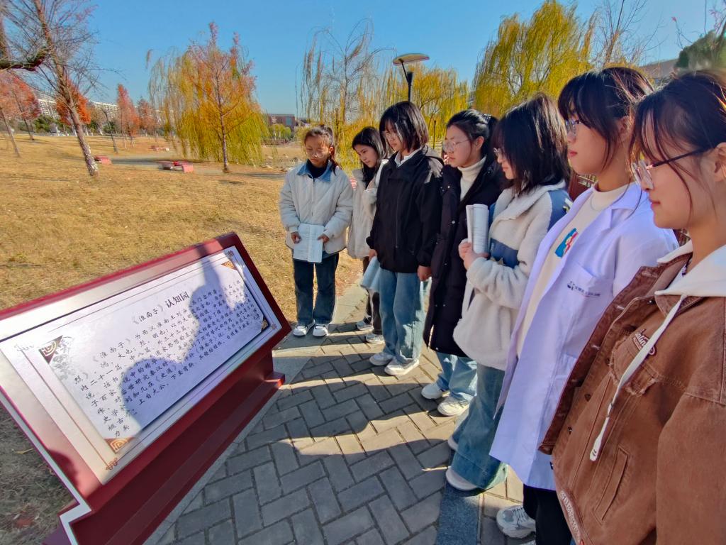 12月5日,组委会在原来学校东组团东南侧建设的楚淮文化体验区基础上,增加了《淮南子》认知园和二十四节气观测点标识牌,丰富了景观小品内涵。在《淮南子》认知园,“牢笼天地,弹压山川;含吐阴阳,伸曳四时”几个大字在荷心亭上熠熠生辉,提醒着青年学生要遵从大义、相信自我,积极磨练自己的意志,开阔自己的心胸,铸造自己的人格,不为眼前的名利所累,把眼光放得长远。在二十四节气观测点,学生可以结合观察花草鸟虫的变化体会物候转变、节气轮回,既能了解先民的大智慧,又能感悟光阴的珍贵,从而丰富大家对生活意义的体验,促进人格和精神的健全发展。
