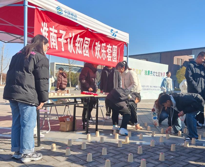 12月2日上午,淮南子文化专题展览在百川广场举行。活动分淮南子文化认知、成语典故感悟、二十四节气体验、经典阅读推广四个分场,通过套圈问答、看图猜成语、投球问答、翻译《淮南子》语句等形式,为学生提供了良好的淮南子文化体验。活动现场吸引了众多同学参与,各个活动点前都排起了长龙,同学们喜笑盈腮,现场气氛十分活跃。同学们纷纷表示,这些活动让大家在互动体验中感悟到淮南子文化的独特魅力,以后将积极参与到淮南子文化的宣传中,为坚定文化自信自强贡献青春力量。