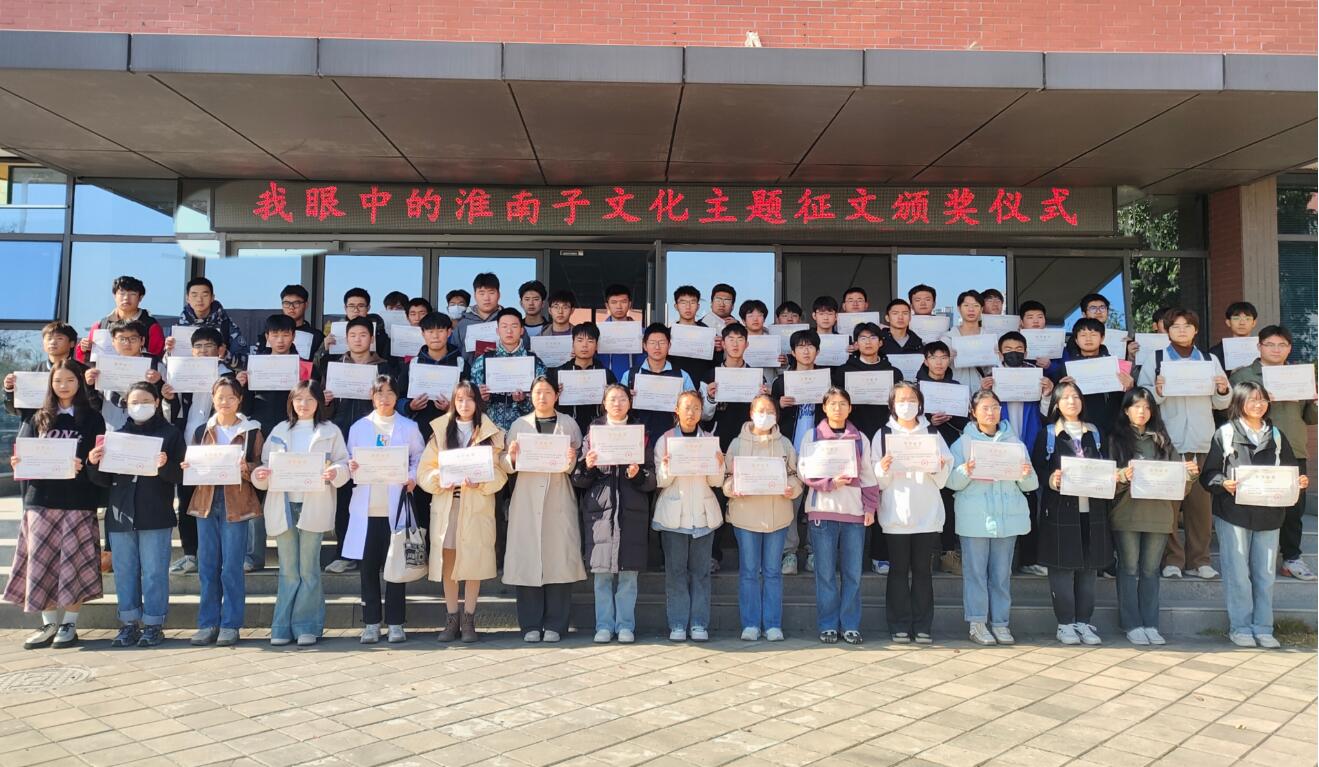12月7日中午,“我眼中的淮南子文化”主题征文颁奖仪式在崇礼楼东广场进行。前期,为发掘与《淮南子》有关的文化故事,让书写在古籍里的文字鲜活起来,开展了主题征文活动。征文围绕与《淮南子》典籍相关的故事、阅读感想、读书修养,以及与淮南子文化相关的个人经历、故事等,共收到13个学院,涉及散文、诗歌、记叙文、议论文等题材的103件作品。内容包括哲学、政治、经济、文化等多个领域以及书中的神话传说、成语典故、二十四节气等方面,内容生动、积极向上,趣味性、可读性强。