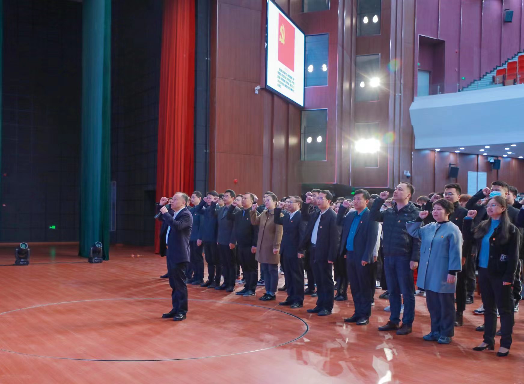 开班式在雄壮的国歌声中拉开帷幕,郭永存带领全体参会师生党员面向党旗重温入党誓词,“我志愿加入中国共产党,拥护党的纲领,遵守党的章程,履行党员义务......”一句句掷地有声的铮铮誓言,再现了入党时的庄严承诺和坚定信念,强烈震撼着在场的每一位党员,更加坚定了初心,坚定了自己肩负的神圣职责和使命。