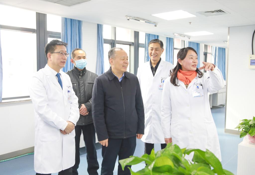 在一附院南区,郭永存详细了解试运营情况,实地查看检验室、手术室、住院部等科室后期建设情况,对人才引育、设备运维、内部管理、服务提升等深入调研指导。他强调,医院要始终坚持“人民至上、生命至上”的理念,锚定建设特色鲜明医教研协同发展的精品医院奋斗目标,不断提升医疗健康服务水平,向着校医融合发展新蓝图聚力奋进,着力打造具有重要影响力的区域医学中心。