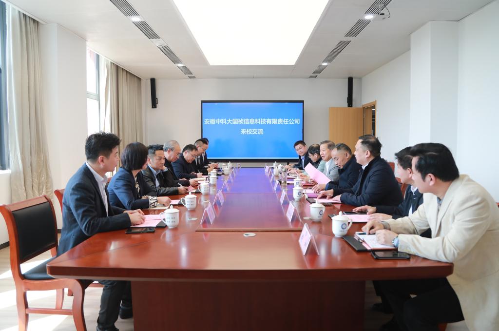 3月19日上午,安徽中科大国祯信息科技有限责任公司董事长谢贻富一行来校交流,校党委副书记、校长袁亮院士在职业安全健康创新中心南楼会议室亲切会见来宾,双方就共同推进网络安全领域科教产融合,服务新质生产力发展深入交流。校党委常委、副校长张平松,安徽中科大国祯信息科技有限责任公司总裁刘胜军参加活动。