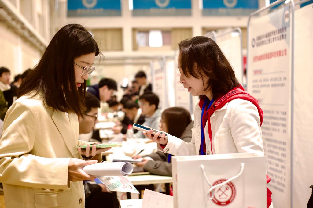 洽谈会现场气氛热烈,秩序井然。学院负责人和毕业班辅导员深入双选会现场,积极向用人单位推荐毕业生。毕业生积极与用人单位沟通了解公司概况、岗位需求,就业工作内容、发展空间、薪资待遇等问题。安徽华恒生物科技股份有限公司招聘经理说:“对应聘者,我关注的不仅仅是他们的专业知识,同时还要求他们有强烈的责任心。安徽理工大学学生基础扎实、踏实肯干,在企业有很好的发展空间。”市场营销2024届毕业生陈可说:“本次招聘会企业优、待遇佳,很感谢学校给予的就业平台和机会,大学生应该转变就业观念,积极主动就业,先就业后择业。”