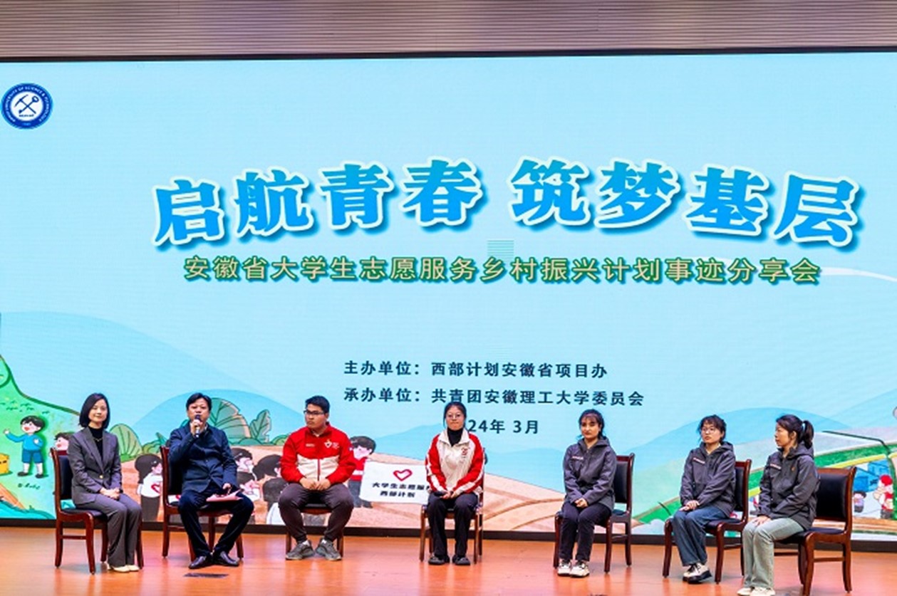 会上,全体成员共同观看了安徽省大学生志愿服务乡村振兴计划宣传片《逐梦皖美乡村 绽放青春芳华》,感受了安徽省大学生志愿者们的青春风采。2023年安徽省大学生志愿服务乡村振兴计划志愿者买哈巴·阿巴尔、王陈成、黄婉冬,2023年西部计划志愿者李璇,2022年新疆专项西部计划志愿者、我校数学与大数据学院2018级数学与应用数学专业校友徐灿依次分享了他们扎根地方、立足岗位、建设祖国、服务乡村的优秀志愿服务事迹,省西部计划项目办就2024年安徽省大学生志愿服务乡村振兴计划的基本情况、工作内容、选拔标准、政策保障等方面内容,向与会同学作充分介绍,并与现场学生交流互动、答疑解惑。