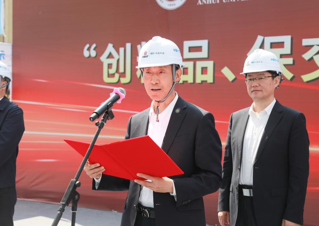 伍昌国代表中国十七冶集团公司致辞。他指出,作为央企,“保交楼”是集团公司义不容辞的政治责任,公司将秉持“保交付、保品质、保民生”的重要信念,严格管控交付标准,全力推动质量创优;围绕“安理智谷”创建,把创新驱动融入工程建设,向新提速、向效发力、向智转型、向绿而行,助力赋能淮南市和安徽理工大学加快培育新质生产力、推动高质量发展。他表示,公司将与学校紧密配合,攻坚克难、真抓实干,确保项目如期交付,向政府、学校、社会交出一份合格的品牌答卷、政治答卷、创新答卷。