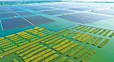 据了解,淮河能源在生产矿井采煤沉陷区实施动态治理,已形成深水区光伏、浅水区种植、岸线治理和陆域土地复垦的立体式生态修复和资源化综合利用模式,在首期试种50亩“漂浮式绿色稻田”成功后,淮河能源还将在此基础上推行渔农互补模式,形成“水上浮床种植农作物+水下网箱养殖水产品”立体模式,既能充分利用沉陷区水面,又能恢复采煤沉陷区原有土地的部分种植功能,实现水面种植与水下养殖、水底增肥土壤与水面种植土循环利用、沉陷区水域利用与生态环境修复三个统筹。