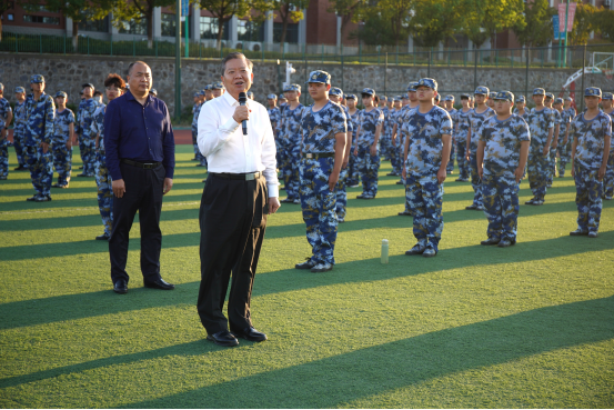 袁亮强调,军训是贯彻落实习近平强军思想、落实立德树人根本任务的重要举措,是同学们接受国防教育的重要形式,也是大家坚定理想信念、厚植爱国情怀、增强纪律观念、提高身体素质的重要途径。他指出,承训单位多次担任学校军训的承训任务,为我校军训育人工作提供了有力支持。他要求各相关部门和学院切实配合好承训教官,做好军训的组织和管理服务工作。他希望参训同学服从指挥、刻苦训练,学习承训教官优良作风,以更加饱满的热情投入接下来的训练中,高质量完成各项军训任务,以强健的体魄、昂扬的斗志、良好的精神风貌为紧张充实的大学生活打牢基础,以丰硕的军训成果践行“请党放心、强国有我”的青春誓言,书写为中国式现代化挺膺担当的青春篇章。