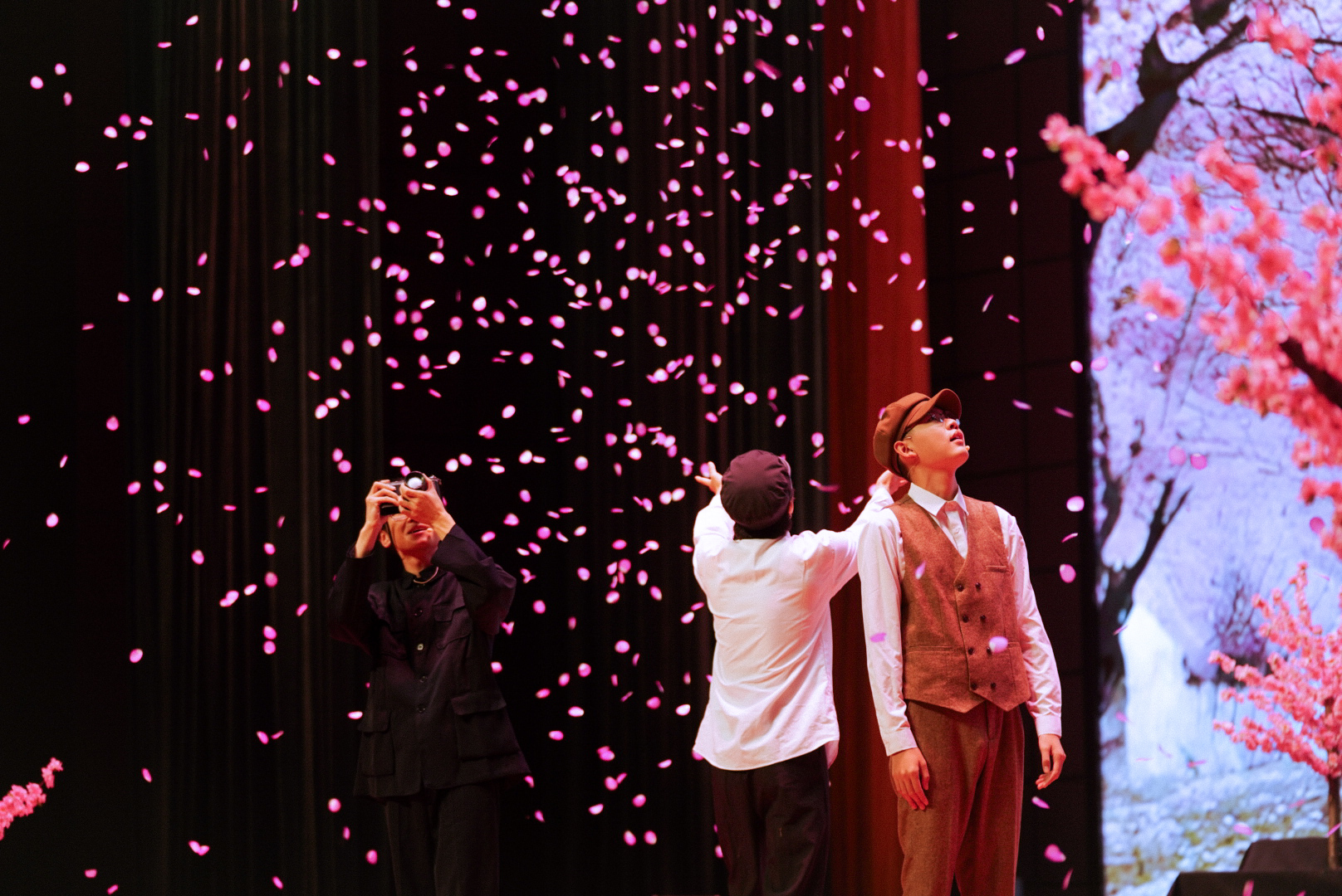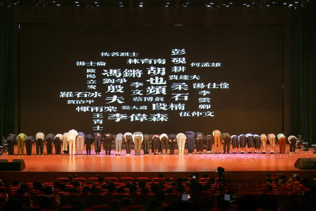 演出现场,一部热血沸腾、激情澎湃的如歌岁月徐徐展开。随着阴森邪魅的呵斥,5位烈士戴着镣铐坚定地走上刑场。面对敌人残酷的审判,他们毫无畏惧,高唱国际歌从容赴死。刺耳的枪声伴随的是血红的党旗飘扬在24烈士的身后。当“龙华二十四烈士”的姓名陆续出现在大屏时,全体演员缓缓转身,面向英雄鞠躬致敬,舞台上方徐徐飘洒下桃花花瓣,诉说着对英雄们无尽的哀思。全剧落幕,滚滚热泪落下,现场响起经久不息的掌声,观众们无不被烈士们英雄气概和顽强不屈的共产党人的精神深深打动。