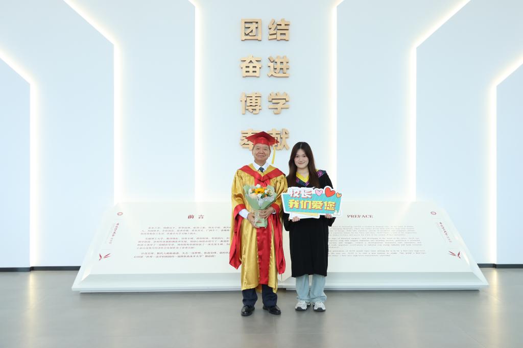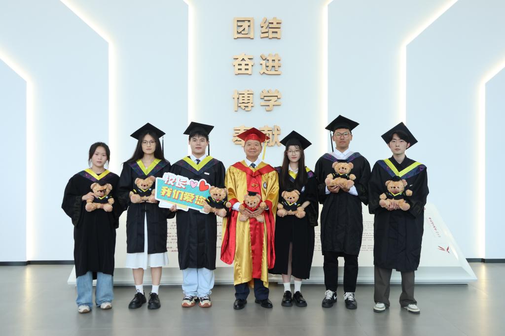 活动现场,近千名毕业生身着学位服,有序地排队等候。校长袁亮院士与同学们亲切交谈,询问他们的毕业去向并送上美好祝福。合影时,校长时而与学子并肩而立,时而配合大家摆出创意姿势,现场笑声连连,充满了温情。