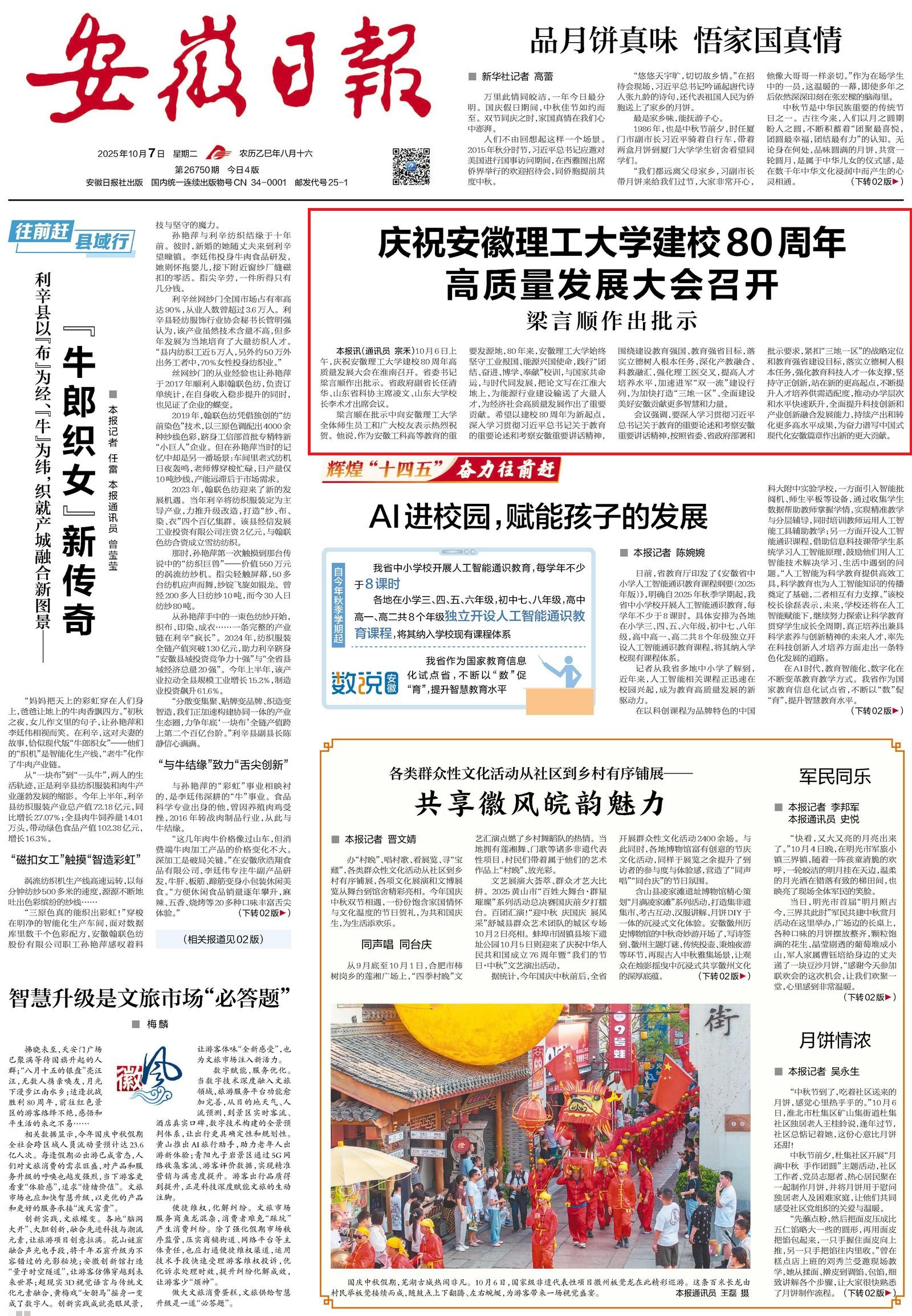 安徽新闻联播 | 庆祝安徽理工大学建校80周年高质量发展大会召开 梁言顺作出批示